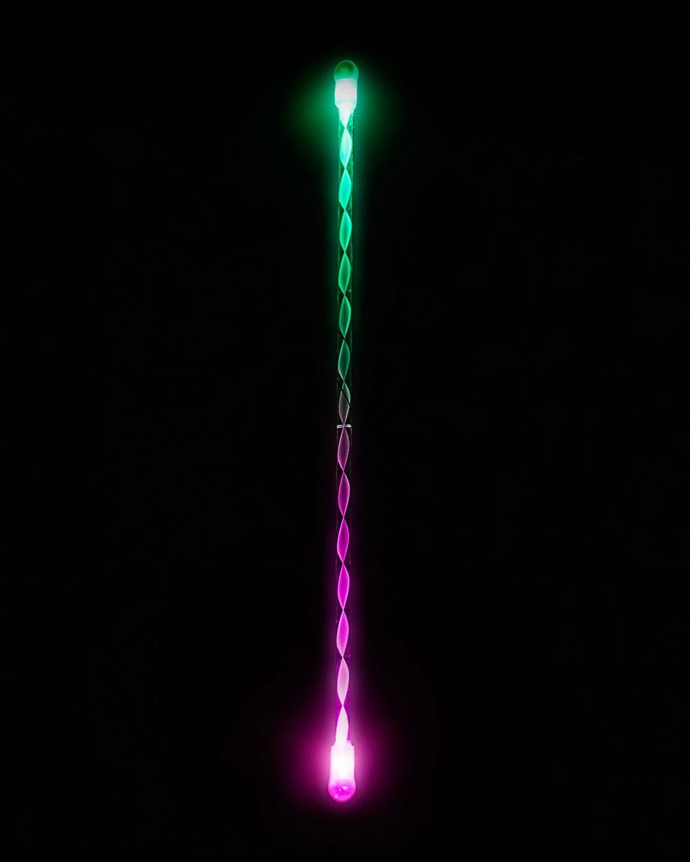 Simply loop the subtle black string around your finger and use it to spin the wand. This creates the illusion of a floating wand of light! Using eLite Flow V2 microlight technology, the eLite Flow Levitation Wand can automatically switch between 16 unique flashing patterns and display up to 3 colors at once.