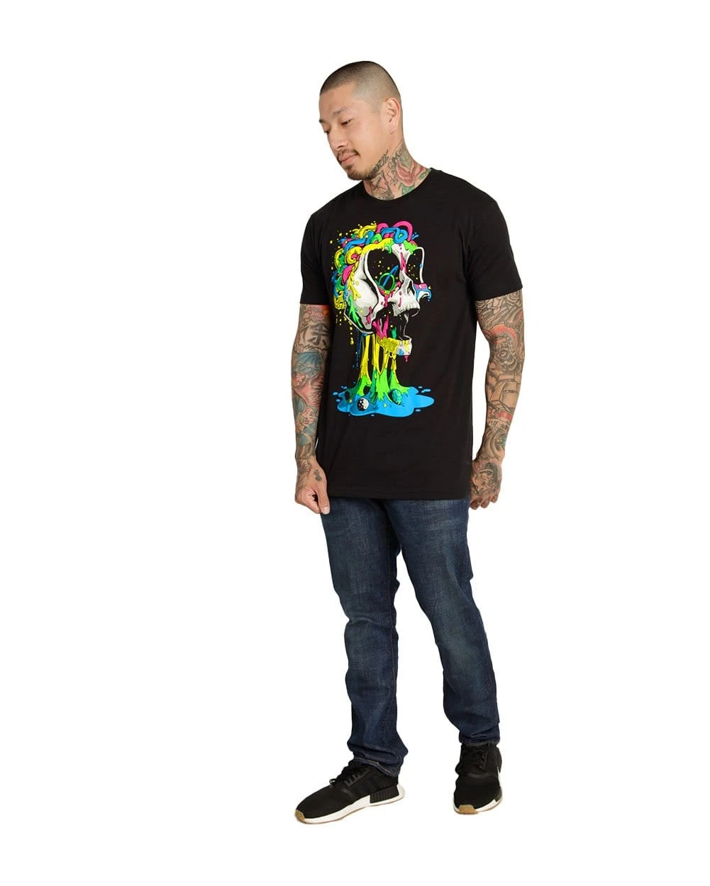 Once you’ve been infected by an agent of change, your world will never be the same. The renewing psychedelic wash melts away old habits with our original Brain Invader design on a premium ultra-soft men’s black t-shirt.