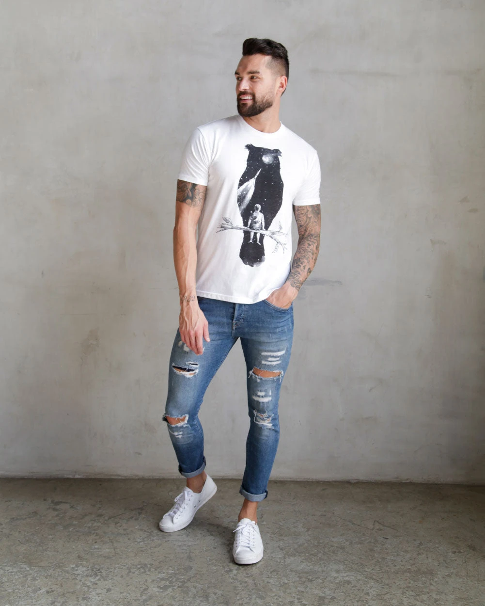 Our original design Dreamer Tee is a surreal escape to a wistful place of child-like wonder. A place where dreams begin among the stars and anything is possible.