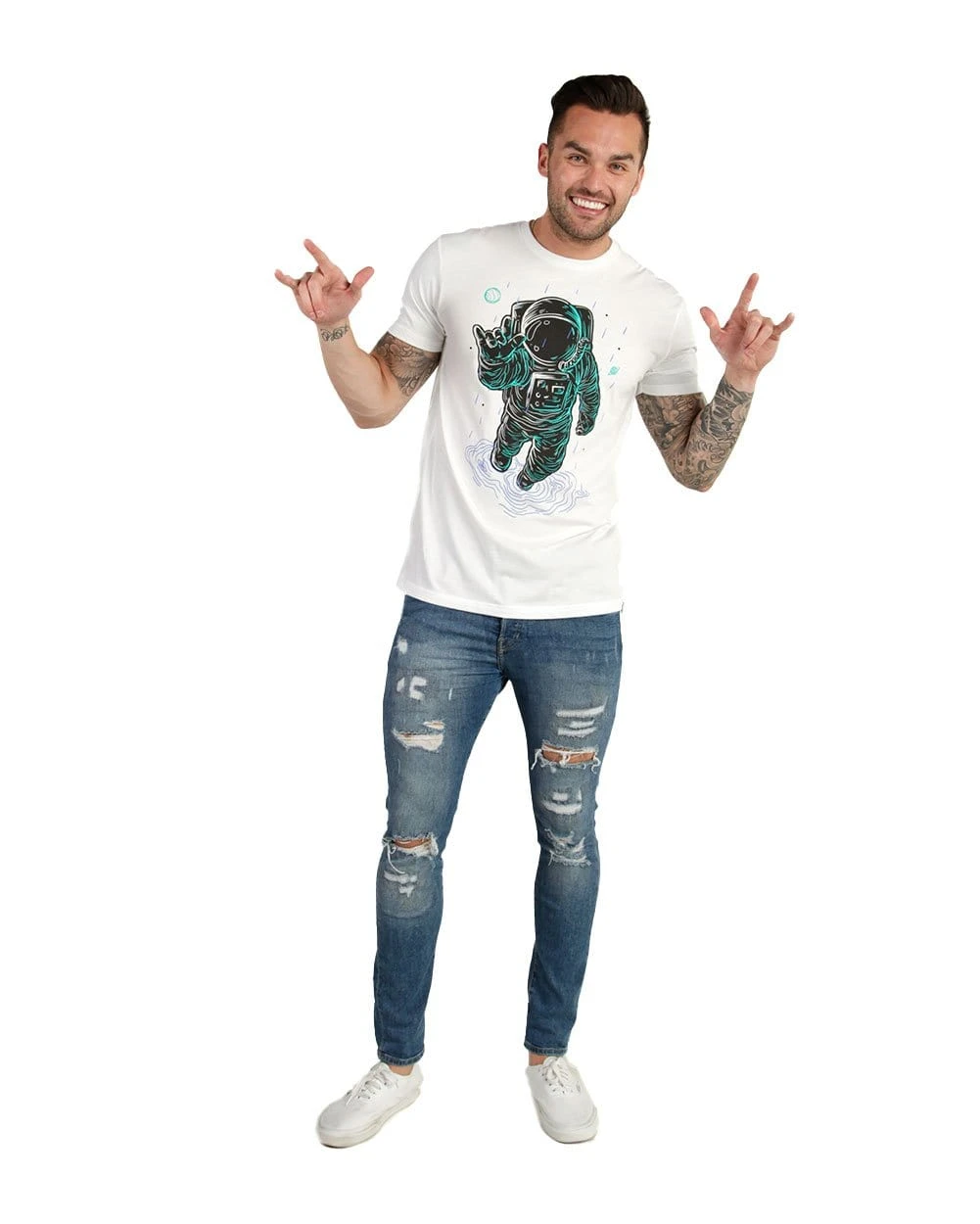 Blast off into space with this universal love, glow in the dark tee. It isn’t easy to be an astronaut but with this shirt, you can get close. Our friendly neighborhood spaceman also comes in peace, flashing the universal sign language symbol for love. It is tailored from ultra-soft fabric and printed with the highest quality inks.