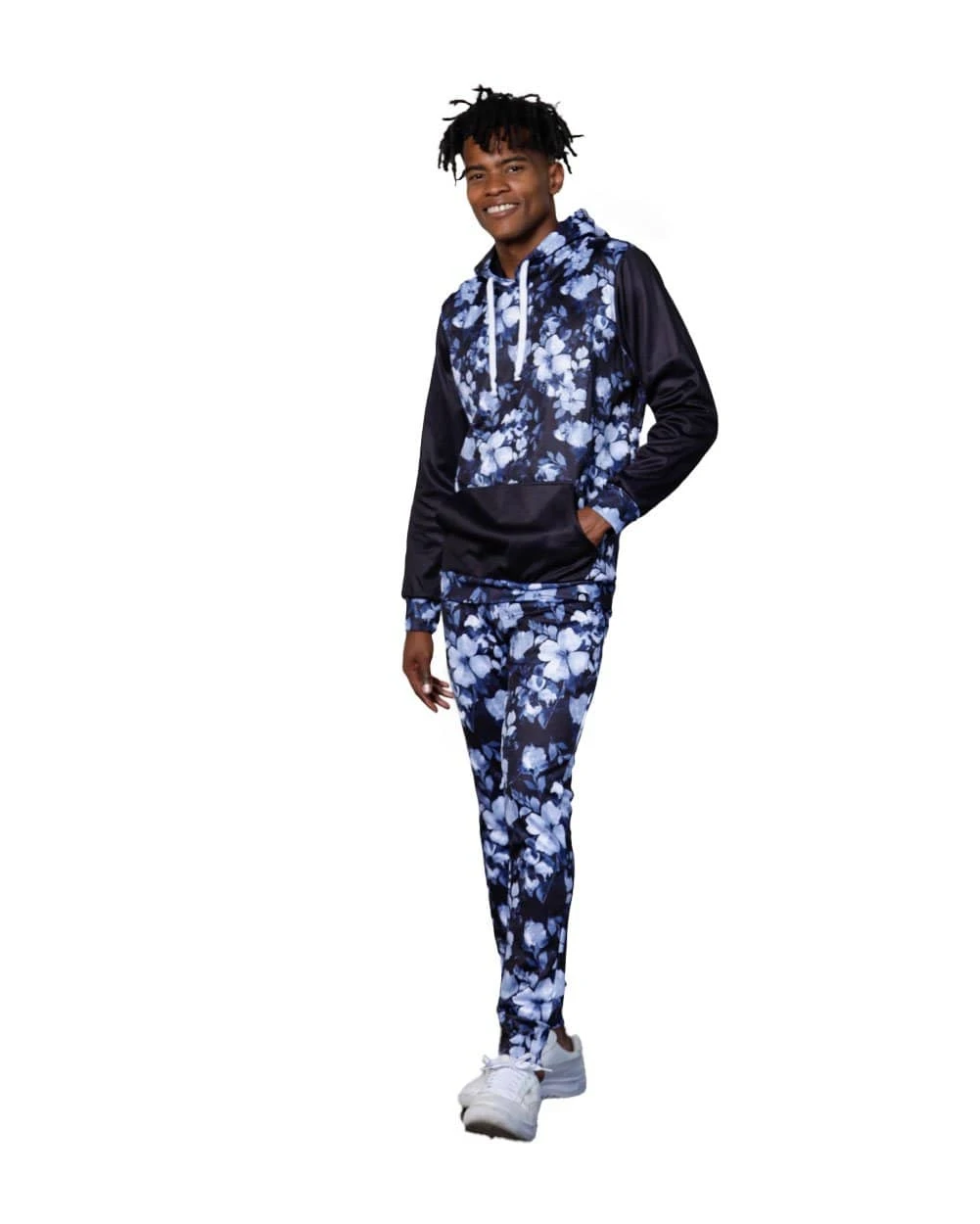 When your passion fuels you INTO THE AM, the unisex Moonlit pullover hoodie will keep you styled every step of the way with its grayscale mix of floral print.