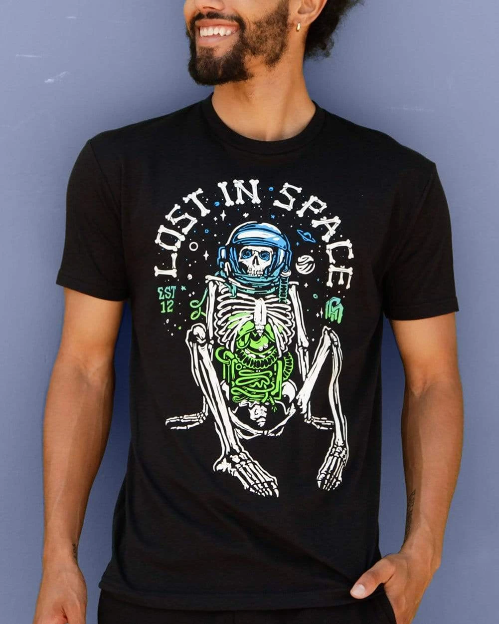 Make no bones about space travel – it’s hard. Astronauts may seem glamorous, but have you ever tasted freeze-dried ice cream or tried eating a Double Double animal style with fries from a tube? Never forget with our original Lost in Space design on a premium ultra-soft men’s black t-shirt.