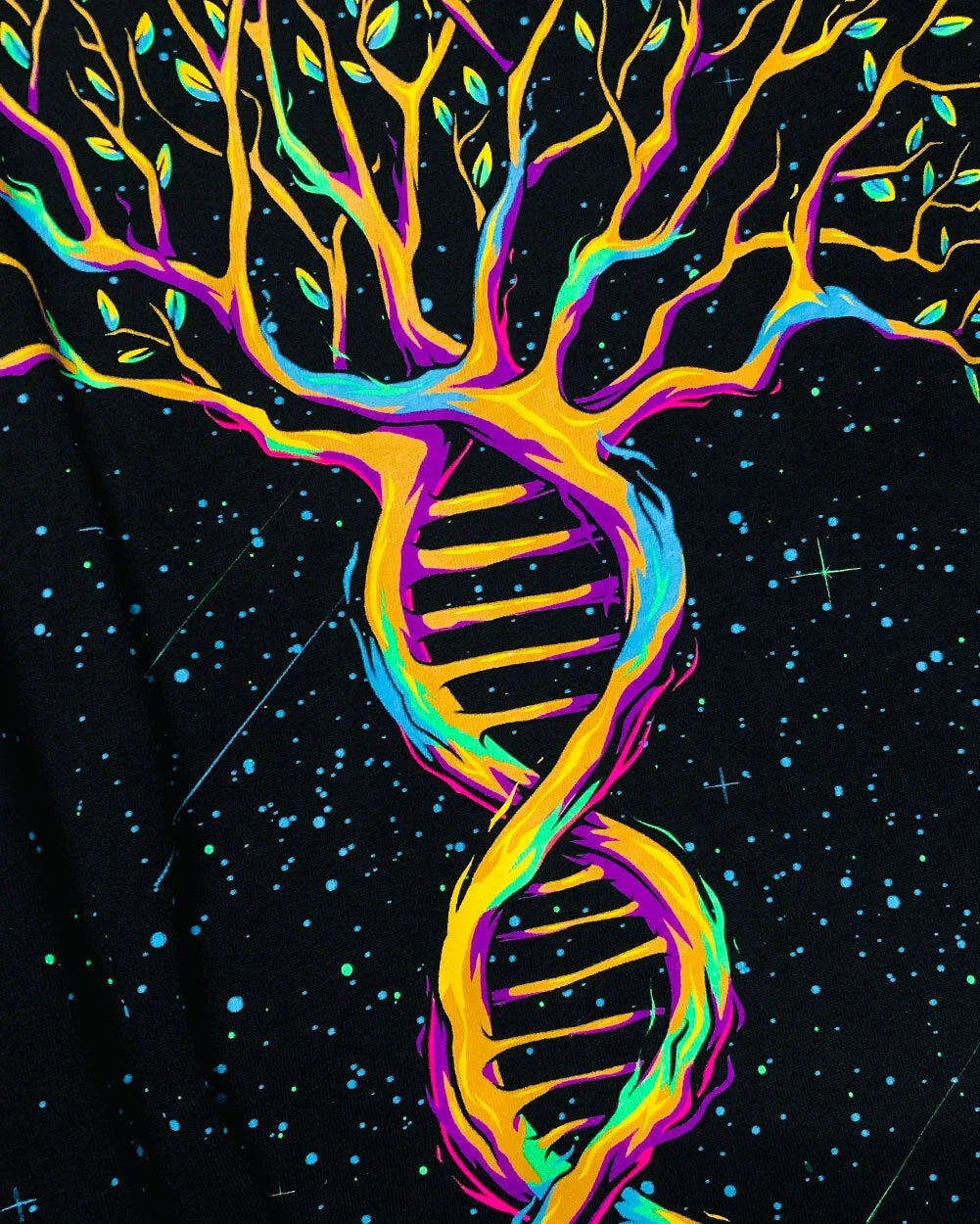 Your strand of life is bound in this dna column. Similar to the growth of a tree, the neon colors represent your emotions. Inspired by the common threads that run through all life as we know it, this ultra-soft graphic tee features breathable fabric and a tailored fit that will keep you comfortable in any conditions.