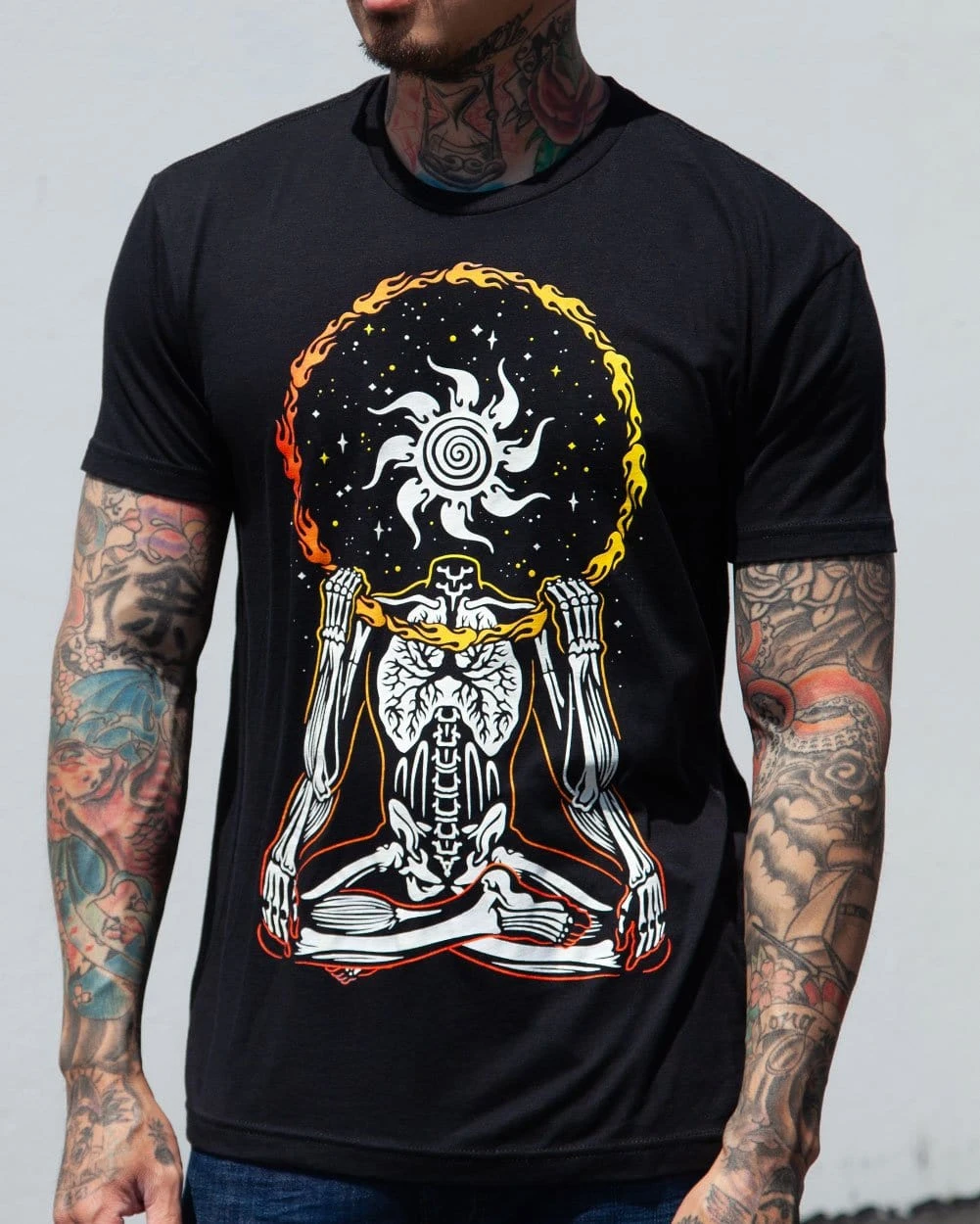 As a universal being, you must strive to be deliberate and conscious of others and your environment. And what better way to let your light shine than with this glow in the dark tee.